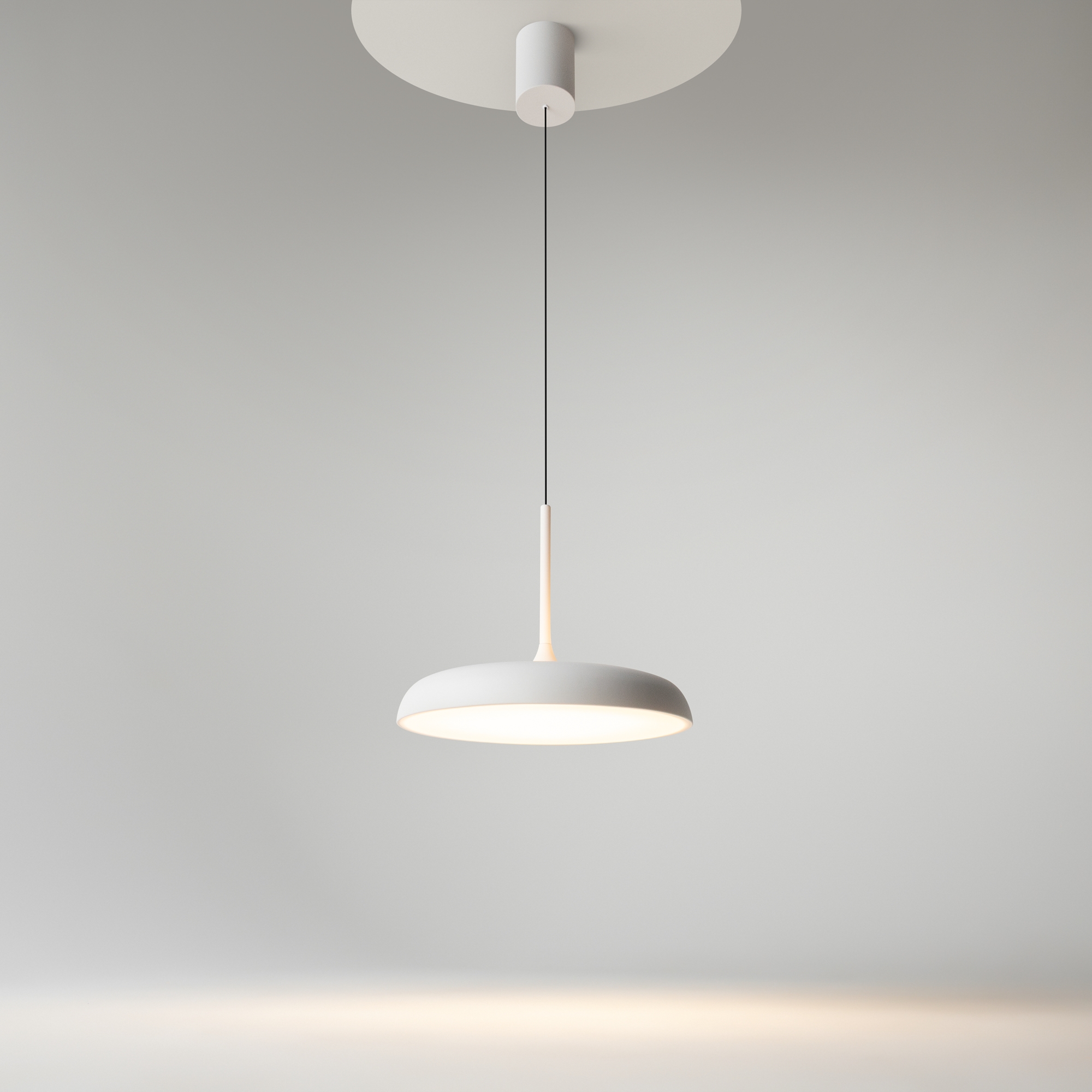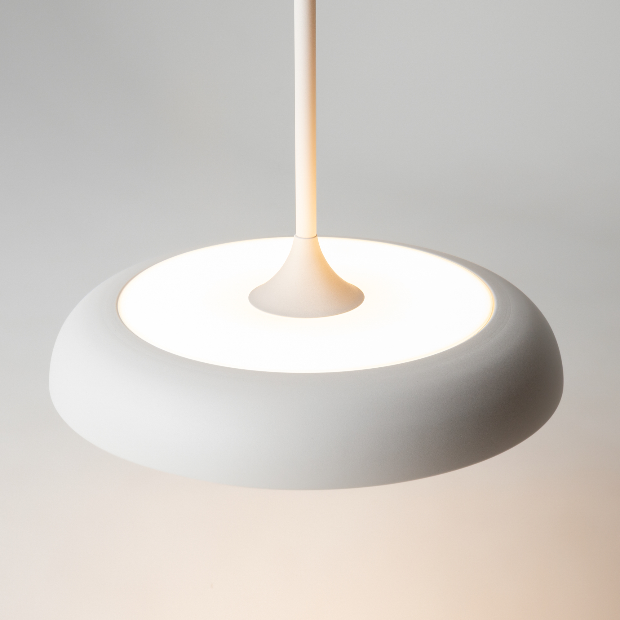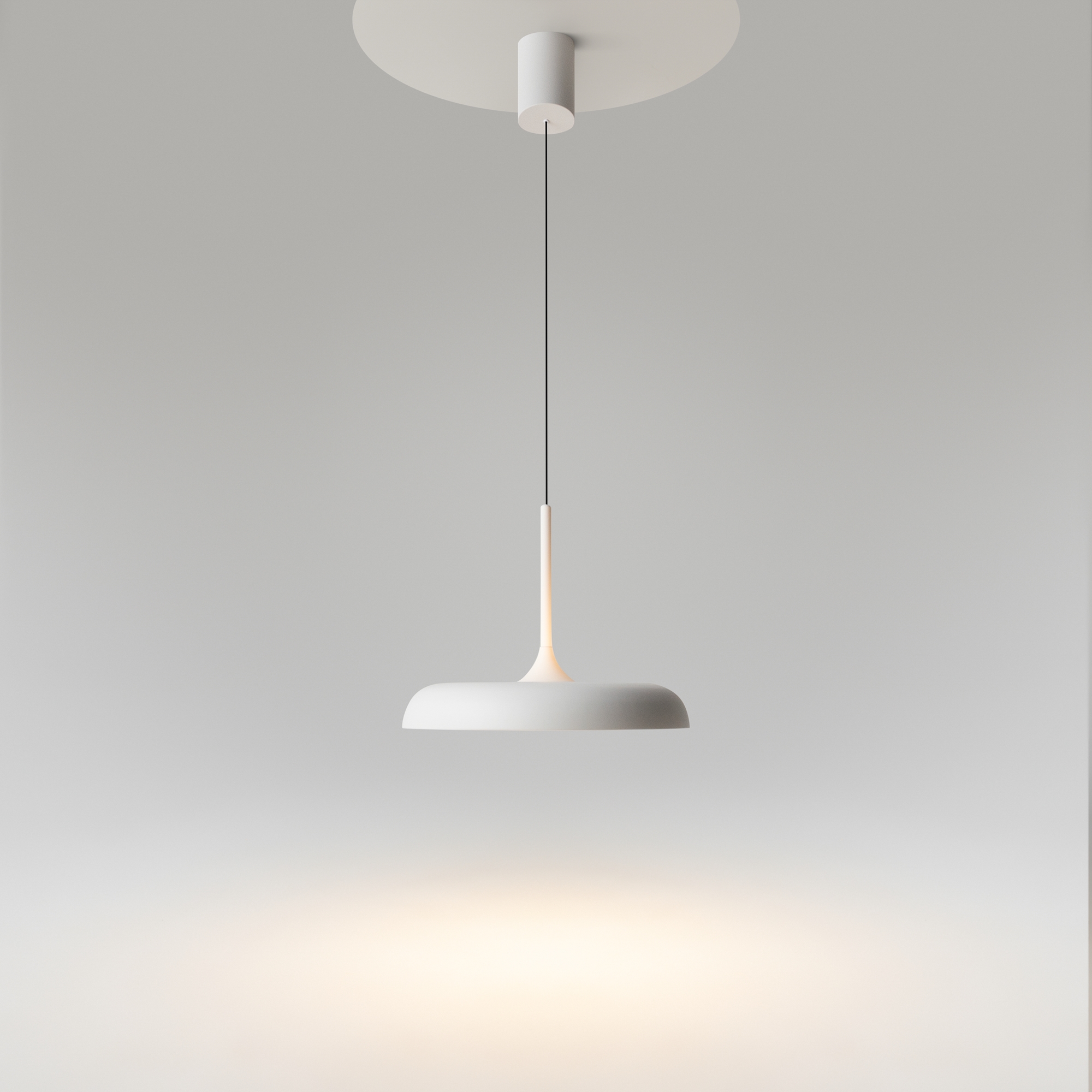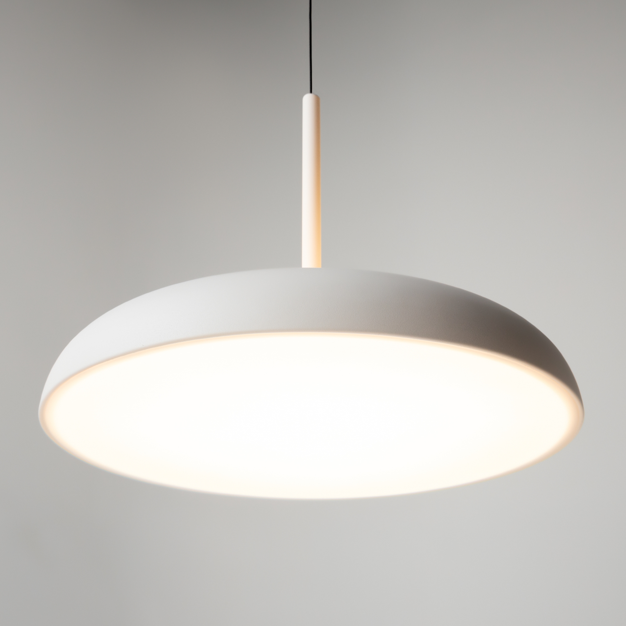 В минималистичной серии Gerhard представлены светильники в двух диаметрах (300 мм и 400 мм), двух цветах (черный и белый), а также в двух форматах.  Первое поколение светильников – классические – направленный вниз свет, длина провода 3 метра. Второе поколение светильников – функциональные – двунаправленный источник света (вверх и вниз) и лифтовый механизм с проводом 2 метра, что позволяет менять высоту расположения светильника одним движением. LED-источник света с цветовой температурой 3000K.
