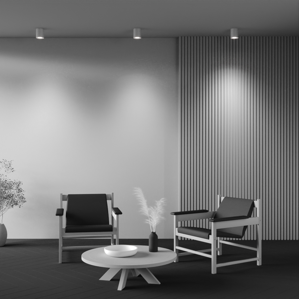 Материал корпуса – металл; цвет – белый, чёрный и золотой. Форма корпуса – стаканчик. Акриловый рассеиватель. Сияющий эффект при свечении. Отсутствие стопорного кольца. Утопленный источник света – лампа GU10.