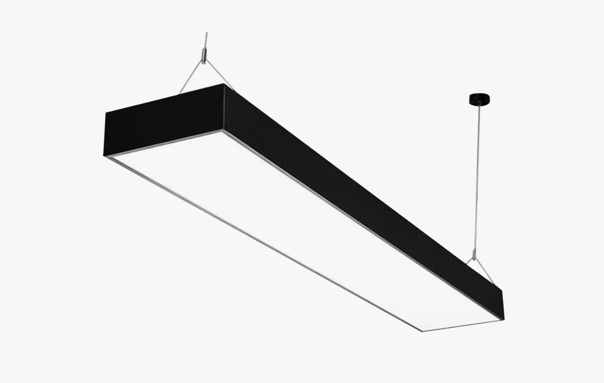 Корпус светильника прямоугольной формы может быть выполнен в черном, белом и сером цветах. Цветовая температура на выбор: теплый цвет (3000К), нейтральный (4000К) или холодный (6500К). Материал корпуса – металл, размеры на выбор. Вариант монтажа – подвесной потолочный.